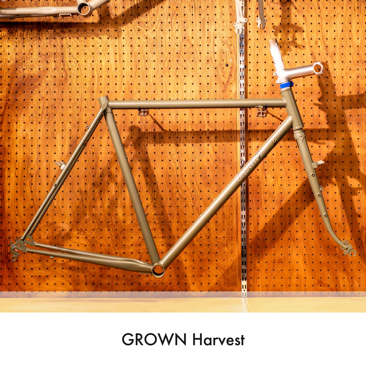 クロモリフレームの中でマスターピースと呼ばれる規格のうち、最も愛され、そして再評価された変速機仕様とシングルスピードを行き来できるロードエンド、130mmハブと135mmハブを共用できる132.5mmエンド、そしてカンチ/Vブレーキ共用台座のこの仕様に、現代的な太めの700Cタイヤを入れられる仕様、そして現行のジオメトリーに起こし直し収穫されたHarvest。